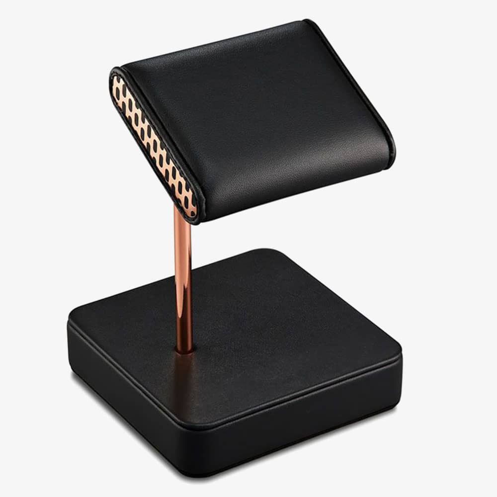 Proudly display your watch wherever you are, ensuring it remains safe, scratch-free, and easily accessible every day. An essential for any collector, the expertly crafted Axis watch stand features vegan leather and a reinforced steel pole for added security. Its cushioned top supports and cradles your timepiece, offering a modern yet practical solution for both displaying and safeguarding your collection.