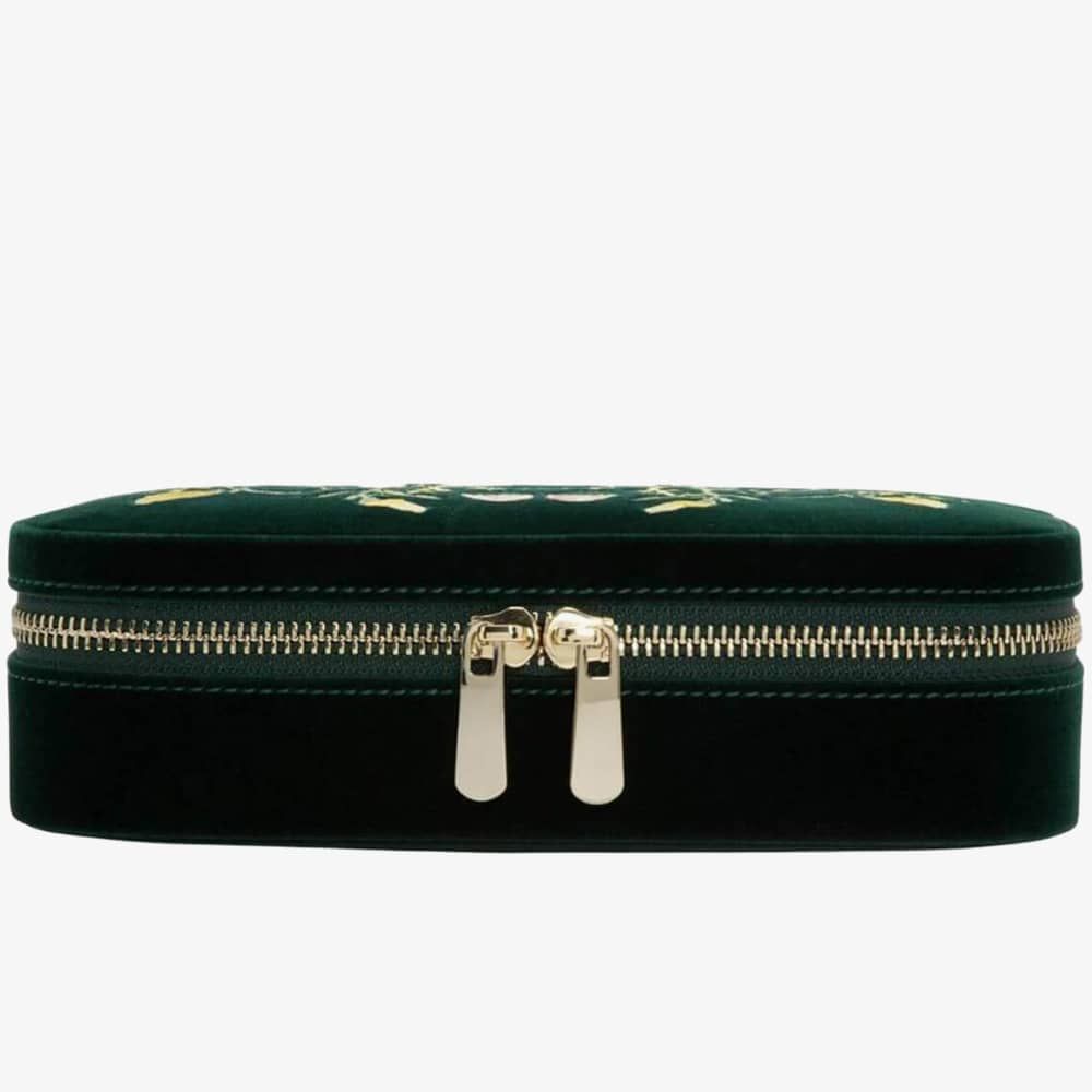 WOLF Zoe Forest Green Travel Zip Jewellery Case 393312