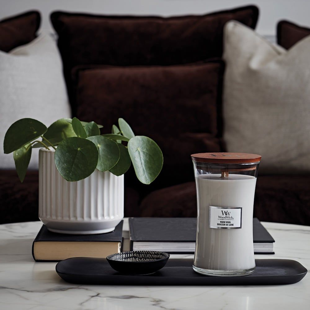 Indulge your senses with the WoodWick Warm Wool Large Hourglass Candle. Housed in a glass jar, this luxurious candle features the distinctive crackle of WoodWick® candles, created by patented PLUSWICK® Innovation technology. Designed for a safe and consistent burn, it delivers a multi-sensory experience, filling your home with rich fragrance and the soothing sound of a crackling fire.