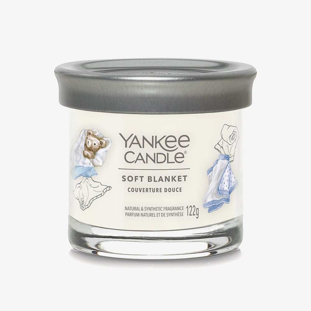 The Yankee Candle Soft Blanket Small Tumbler Candle comes in a sleek glass jar with a brushed tin lid that doubles as a coaster. Made with a premium soy wax blend and a single wick, it fills your space with a fresh and clean scent of Cashmere Vanilla, Bergamot and Amber. Perfect for gifting or trying a new fragrance.