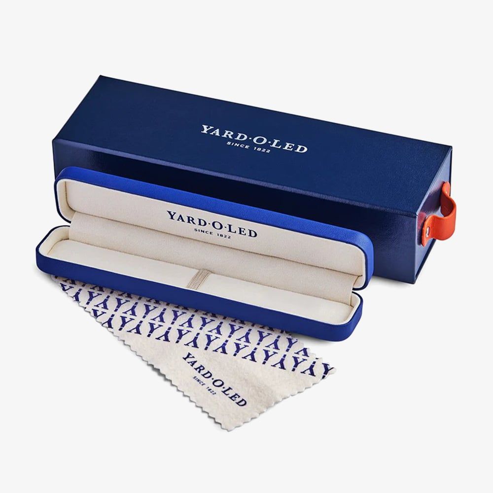 The original Yard-O-Led Diplomat propelling pencil is a timeless classic, cherished for its enduring design that has remained unchanged since 1934. Carefully crafted, its angular hexagonal shape prevents rolling, providing stability on inclined surfaces like a draughtsman’s table.