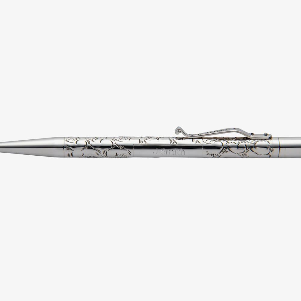 The Perfecta’s sleek, slender form and subtly flared top result in a lightweight pen with a delicate and graceful silhouette. Its design, inspired by the popular aesthetics of the early 19th century, exudes timeless elegance. Notably, each Victorian-patterned writing instrument is meticulously crafted with up to 3,000 hand-chasing taps by skilled silversmiths. This artisanal process ensures that every pen is uniquely distinctive, with slight variations in the pattern that make each piece one of a kind.