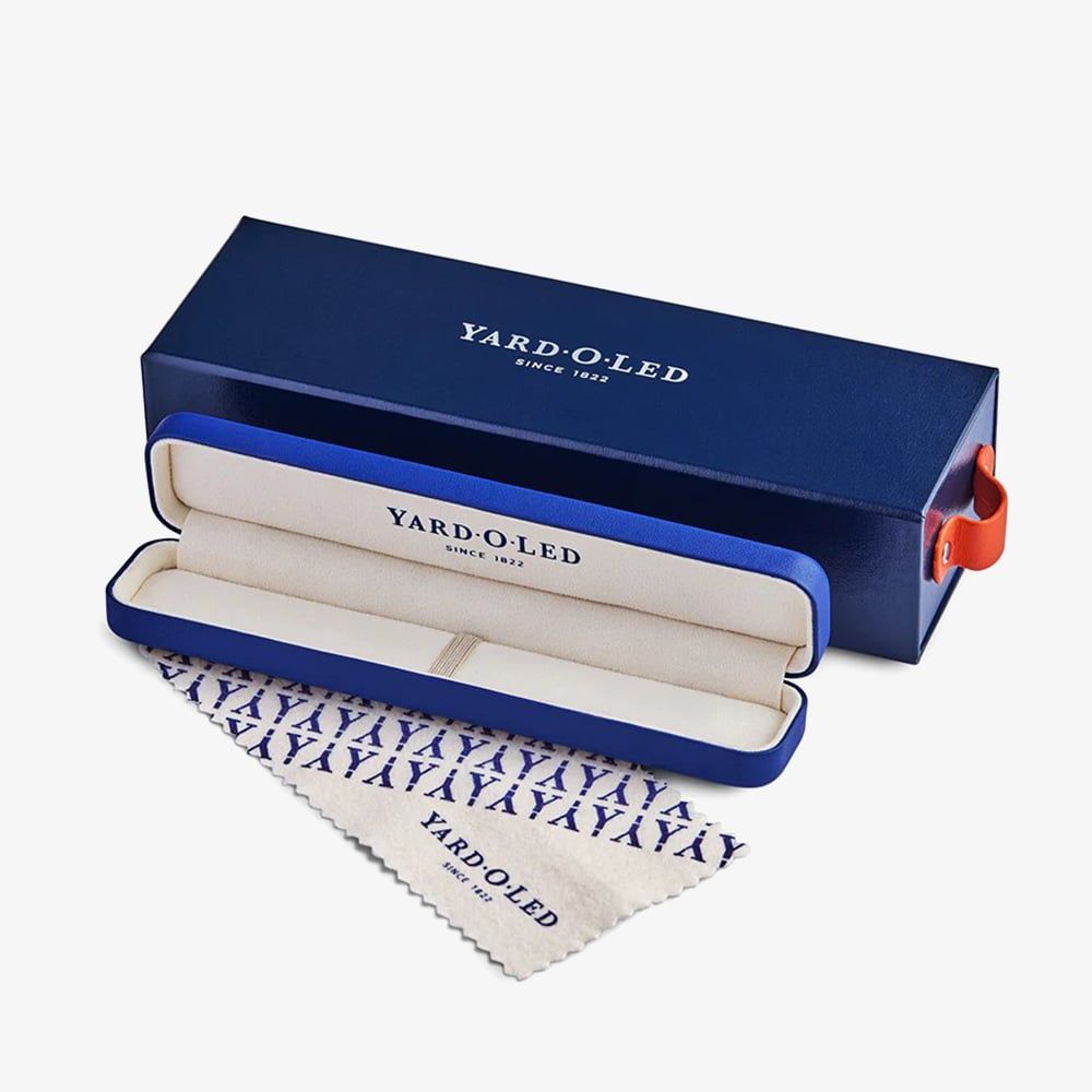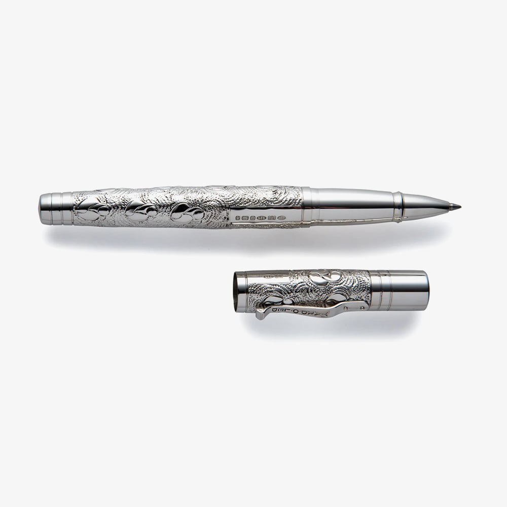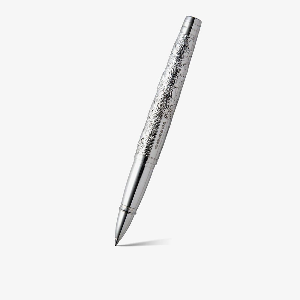 The Yard-O-Led Viceroy Grand Victorian Rollerball Pen is a true work of art, crafted from sterling silver and adorned with an intricate quilted pattern. Designed for the dedicated pen connoisseur, this pen is the epitome of elegance and sophistication. The Viceroy Grand offers impeccable balance, while its substantial dimensions exude a commanding sense of authority. Its Victorian-inspired design is brought to life through an extraordinary process: up to 3,000 hand-chasing taps by skilled silversmiths create the intricate pattern. This meticulous craftsmanship ensures that each pen is uniquely distinctive, with slight variations that make every piece one of a kind.