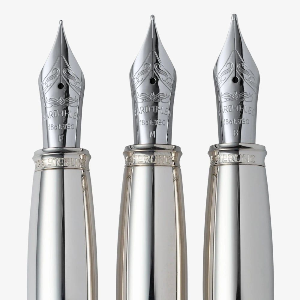 A testament to Yard O Led's commitment to quality and design, this collection caters to every writing style. This classic Yard O Led pen, in a universally popular size, boasts a sleek, understated look in highly polished silver.
