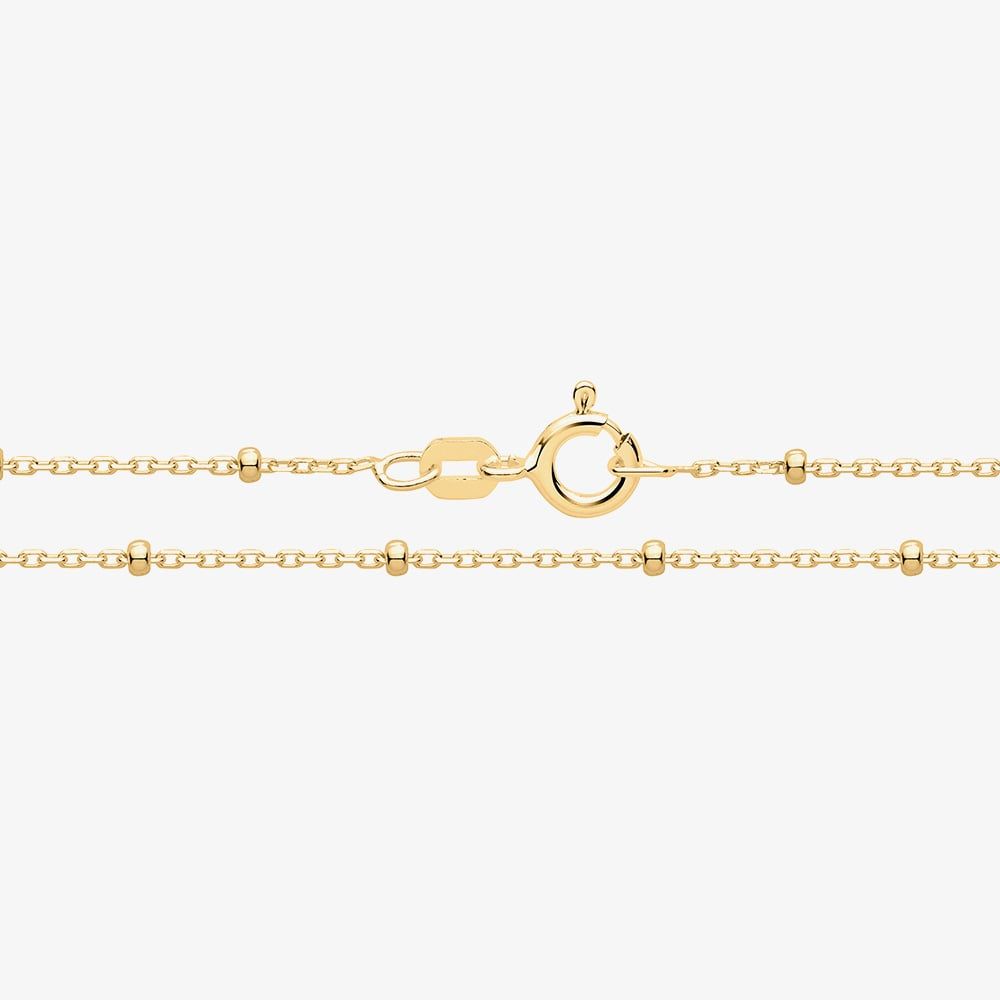 This 10-inch sterling silver rolo chain is finished with a luxurious yellow gold plating and features a delicate beaded design with a secure bolt ring clasp. Sleek and versatile, it can be worn as a bracelet or anklet, adding a touch of elegance and contemporary style to any outfit.