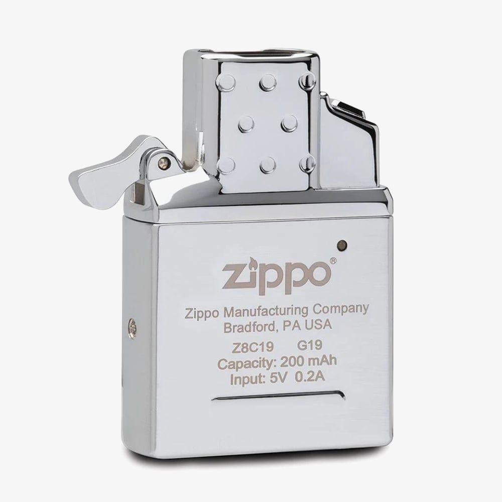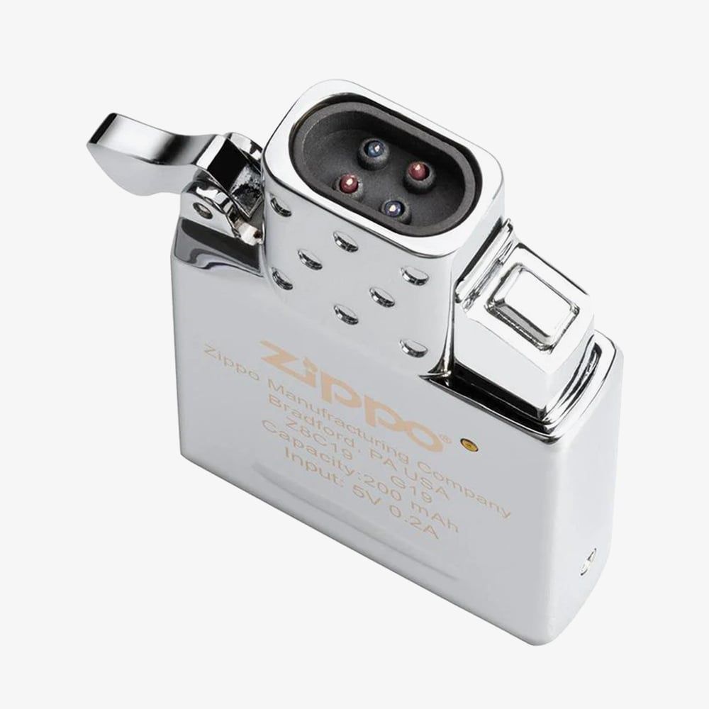 Upgrade your Zippo lighter with the rechargeable double plasma arc insert. Featuring two windproof plasma beams and push-button ignition, it delivers quick, reliable performance even in harsh conditions. Powered by a 200 mAh battery, it recharges in about an hour via micro USB and lasts for up to 300 charges. A 10-second safety shut-off adds extra protection. Designed to fit all standard Zippo lighter cases (excluding Slim and 1935 Replica), it retains the classic Zippo "click" and comes in a gift box.