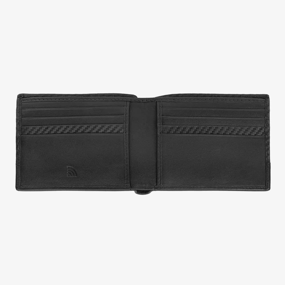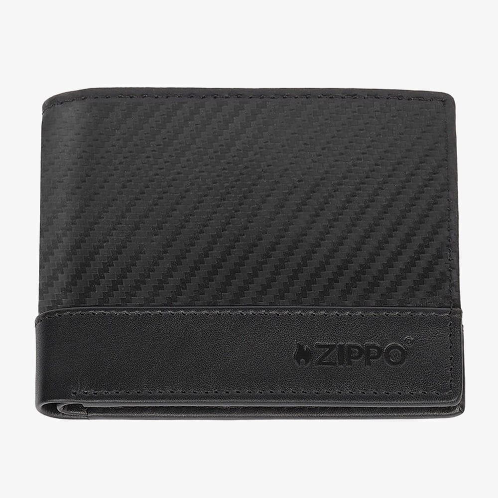 Add modern sophistication to your everyday essentials with the Zippo Carbon-Fibre Patterned Wallet. Crafted from genuine leather, this sleek and contemporary design offers ample space for notes and credit cards, combining functionality with refined style. Featuring subtle Zippo branding, RFID-blocking technology for added security, and a luxurious jacquard lining, this wallet makes a great gift.