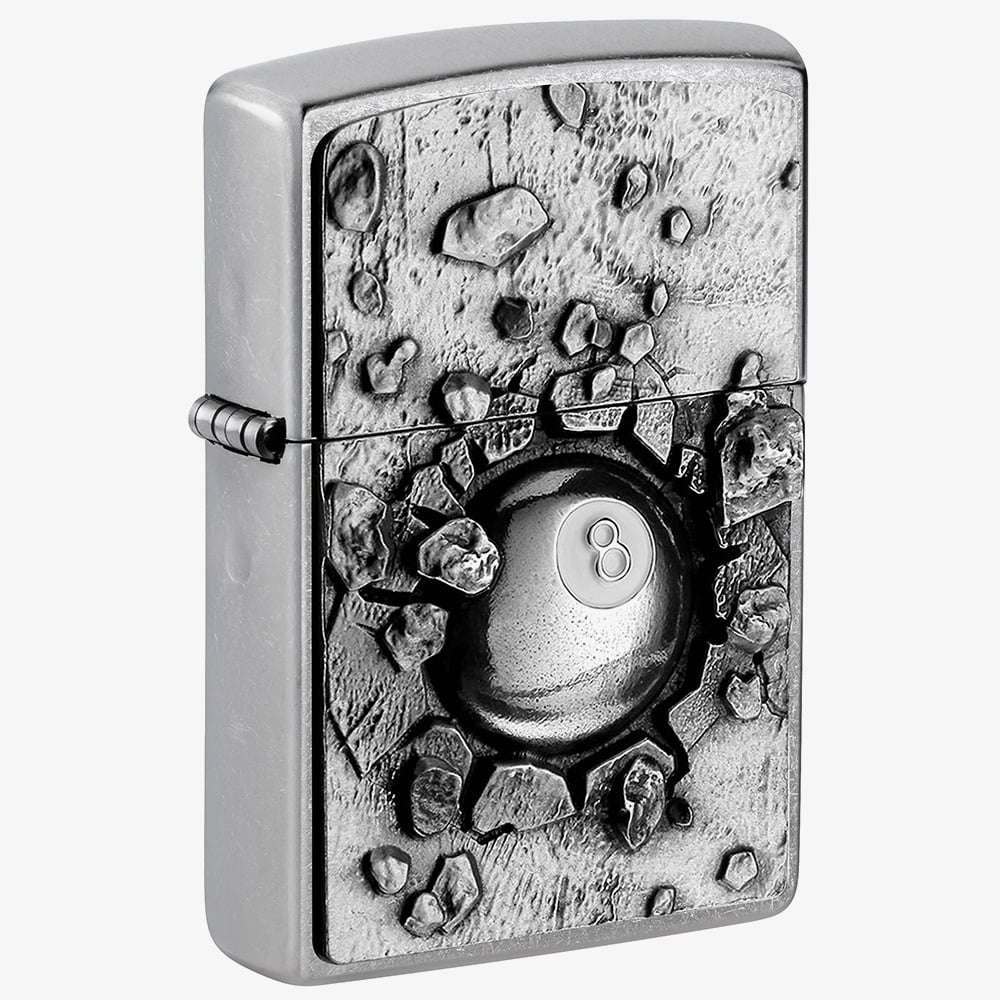 This polished Zippo lighter features a bold chrome 8-ball design, adding a touch of cool and confidence. With Zippo’s signature windproof construction and iconic "click," this all-metal lighter is built for durability and style. Packaged in a gift box. Fuel sold separately.