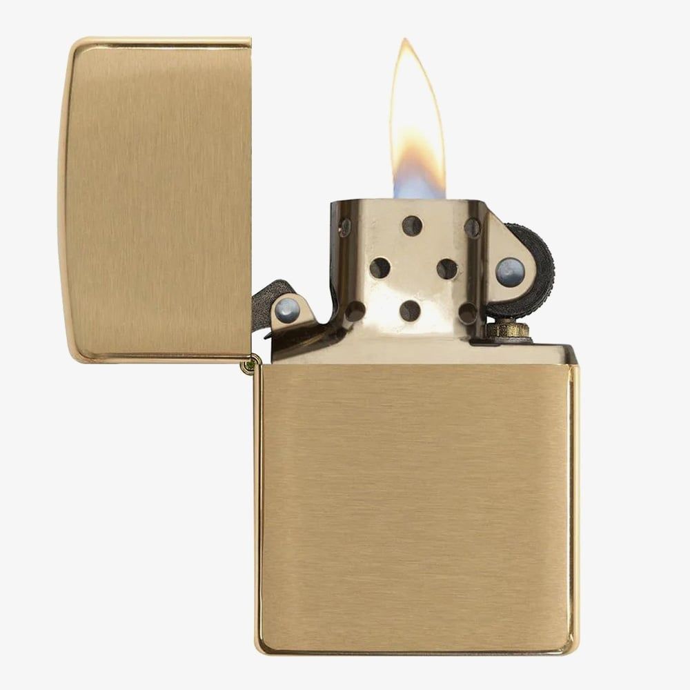 The Zippo Classic Brushed Brass lighter features a horizontal brushed finish on the front and reverse. The sides are buffed to a high polished finish for a bold contrast. With its genuine Zippo windproof design and iconic "click," it’s perfect for use in any weather. Refillable lighter packaged in a gift box. Fuel sold separately.
