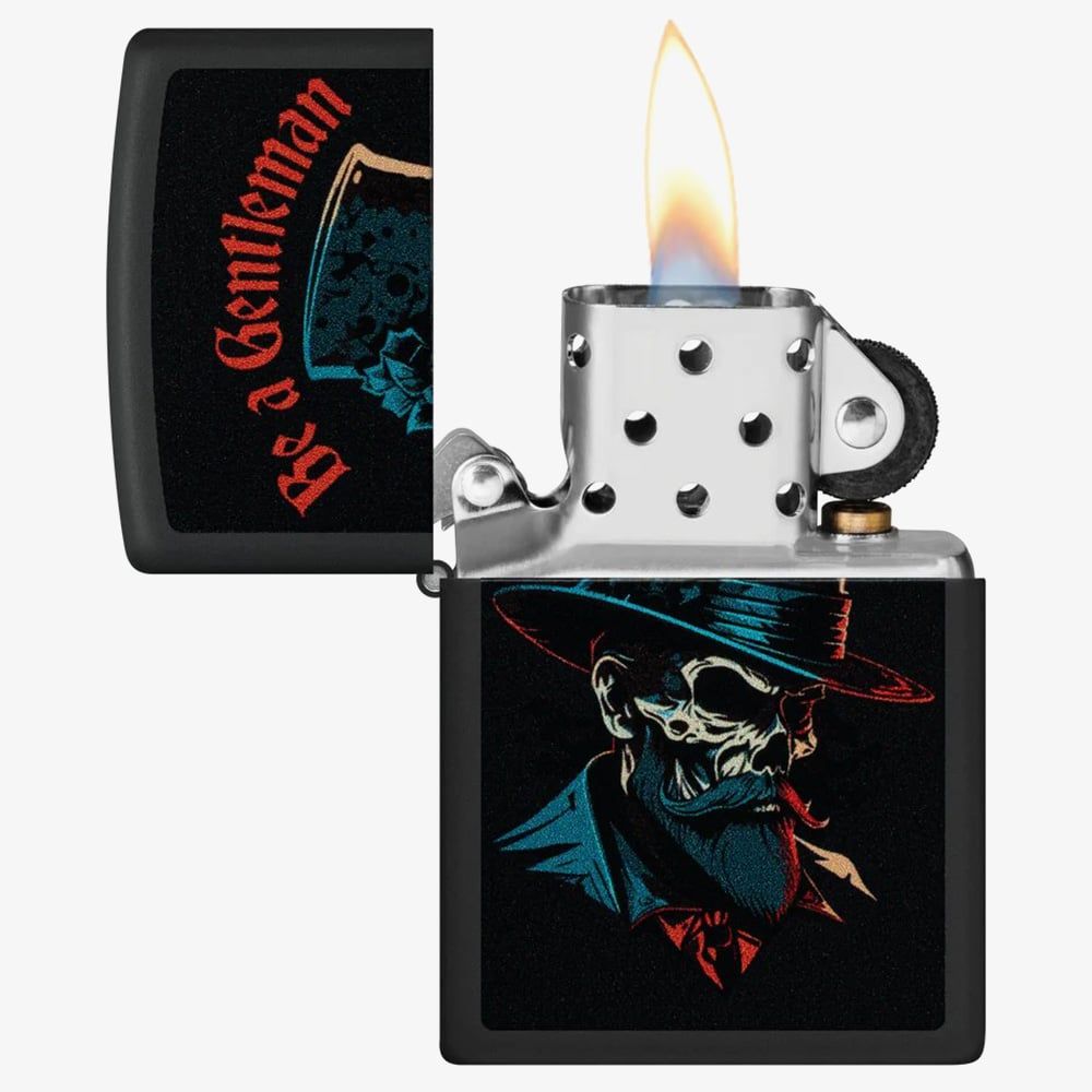 This stylish Matte Black Zippo lighter features the inspiring "Be a Gentleman" text, adding a touch of sophistication and class. With Zippo’s signature windproof construction and iconic "click," this genuine all-metal lighter ensures reliable performance in any situation. Packaged in a gift box. Fuel sold separately.