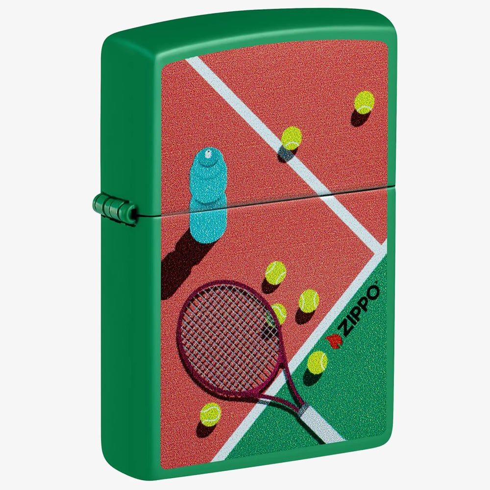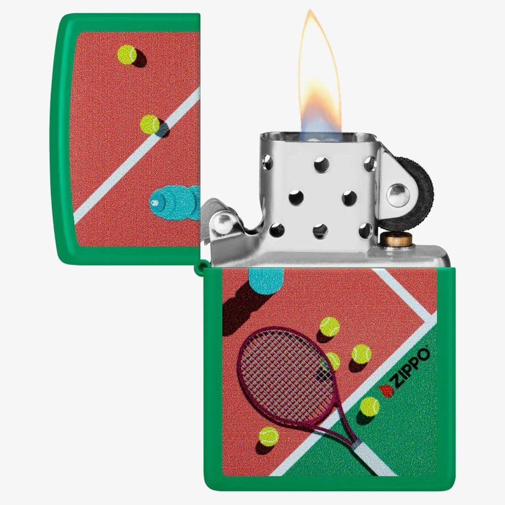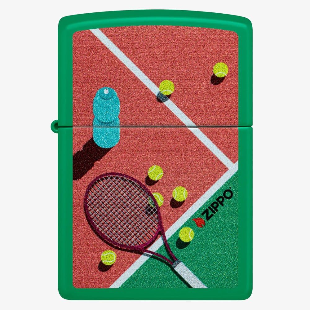 Perfect for any tennis fan, this classic Grass Green Matte lighter showcases a bold design depicting a typical training session. This genuine Zippo windproof lighter delivers the unmistakable Zippo "click" and works virtually anywhere. It comes packaged in a gift box, making it a great addition to any collection. Fuel sold separate.