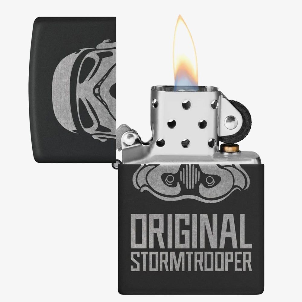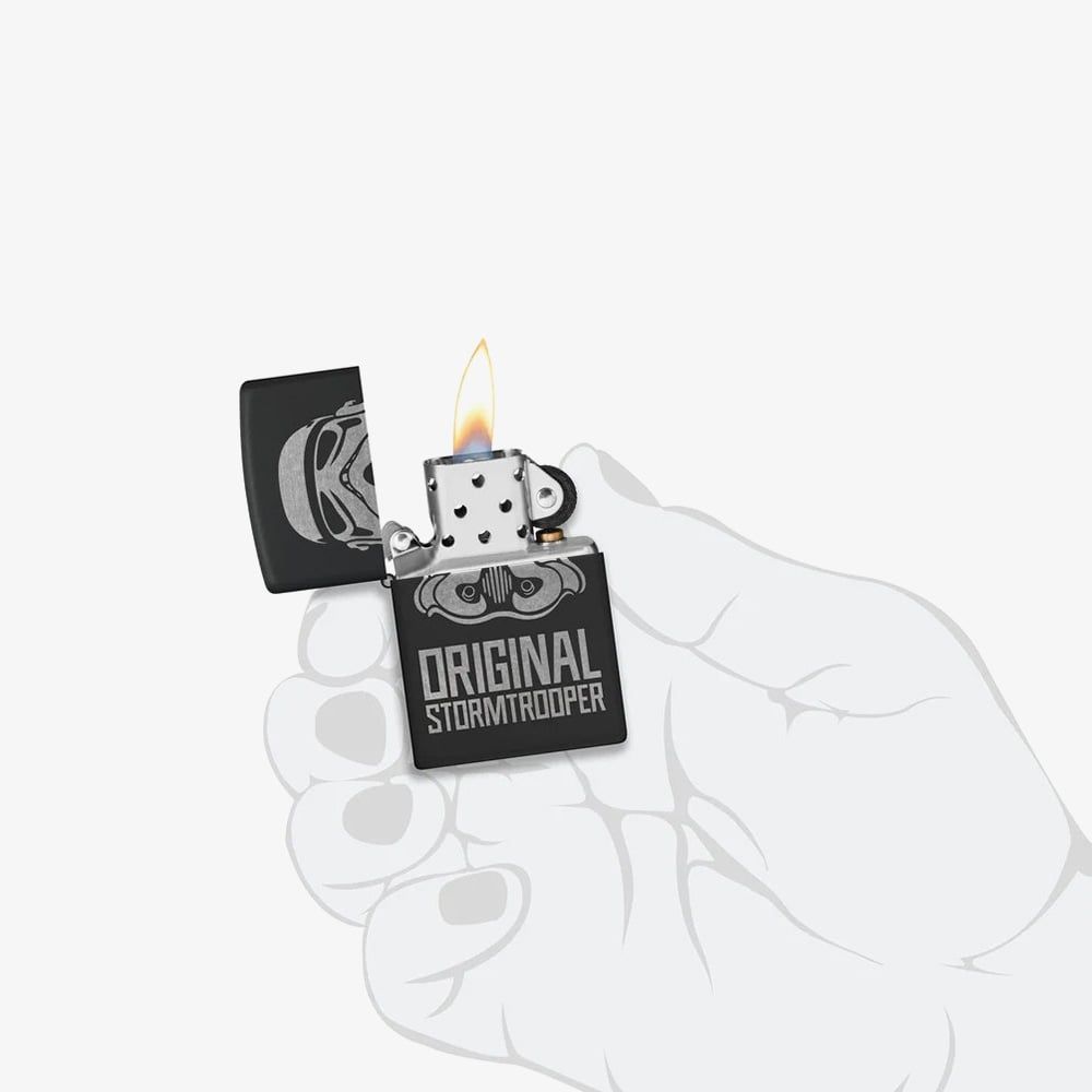 https://www.thbaker.co.uk/zippo-original-stormtrooper-black-matte-engraved-lighter-218c-125179177617Zippo Original Stormtrooper Black Matte Engraved Lighter 218C-125179https://www.thbaker.co.uk/media/catalog/product/3/1/31-17-25155387_zippo_01.jpg62.962.9GBPInStock/Gifts/Lighters/Brands A-Z/Zippo802880341236874792Blk Matte with Chrome - Stormtrooper Helmet Lighter This black matte finish lighter features a statement laser engraved design from Original Stormtrooper showing a soldier's helmet and iconic logo in cool chrome tone. This lighter makes a great gift for any Stormtrooper or Star Wars fan. A genuine Zippo windproof lighter with the signature "click," it boasts all-metal construction and a windproof design that works virtually anywhere. Packaged in a gift box. Fuel sold separately.