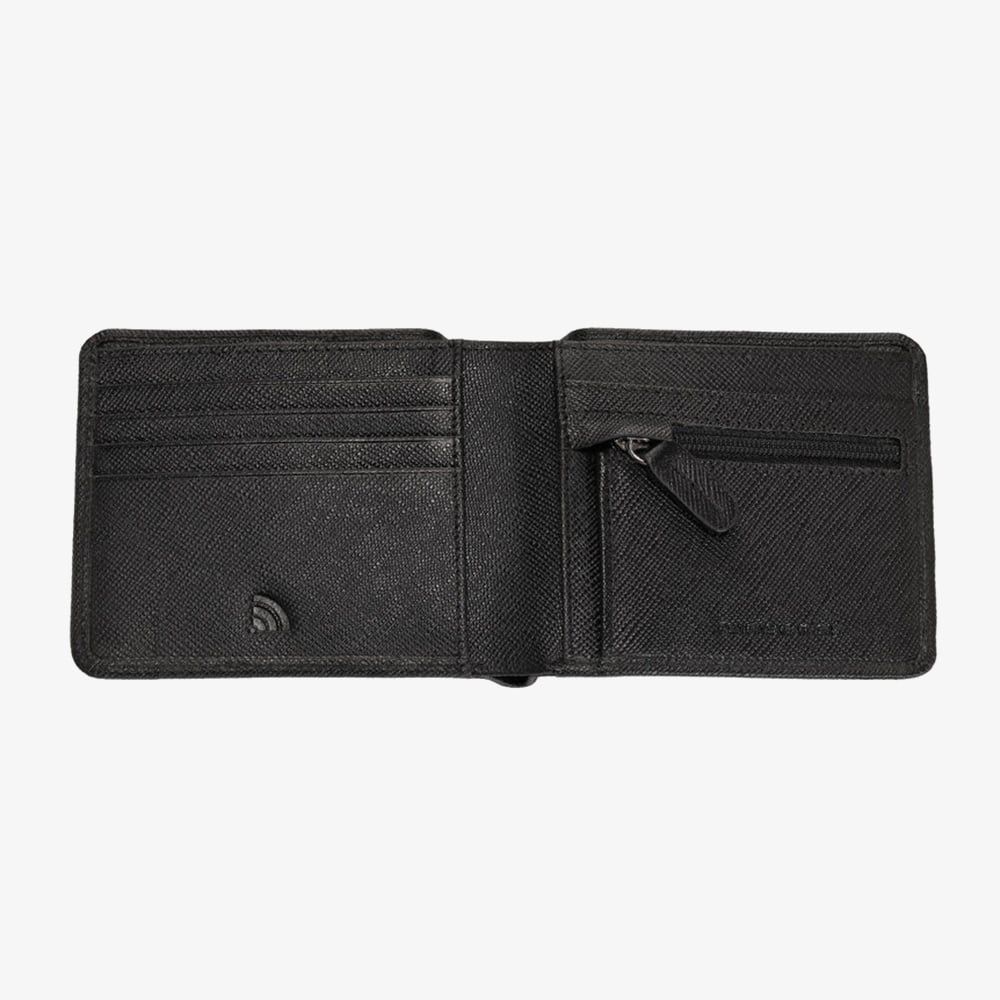 Combine style and security with this Saffiano Folding Wallet in sleek black leather. Crafted from durable Saffiano leather, it features a zipped coin compartment, ample space for notes and cards, and RFID-blocking technology to keep your personal information safe. Practical, sophisticated, and designed for everyday use, this wallet is a timeless accessory for modern living.