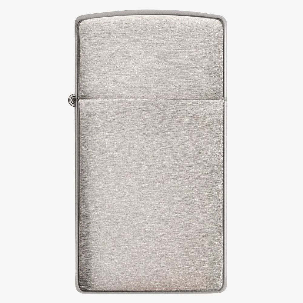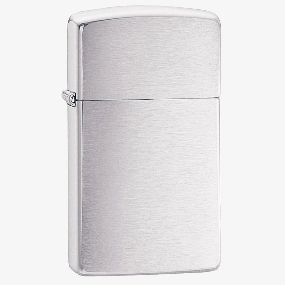 The Slim Brushed Chrome Zippo lighter is a compact version of the classic windproof design, offering the same reliability in a sleeker form. The all-metal construction and windproof design ensure dependable performance in any conditions. Packaged in a gift box, this lighter is perfect for gifting. For optimal performance, fill with Zippo lighter fuel. Fuel sold separately.